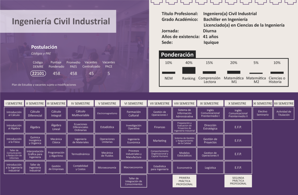 El egresado de esta carrera está capacitado para desarrollar su profesión en las áreas de ciencias básicas, ciencias de la ingeniería, ingeniería aplicada y ciencias sociales, en concordancia con los estándares de calidad que hoy se le exige a las carreras de Ingeniería.